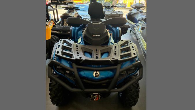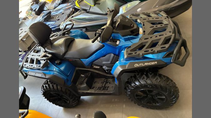 Quadriciclo Can-Am Outlander Max 850 ano 2023, com apenas 43 horas/747 km de uso. Equipado com motor ACE de 850 cc, Direção Dinâmica Assistida (DPS), guincho, engate, rodas de liga-leve, pára-choques, protetor de manoplas, faróis em Led, pintura metálica, além de muito mais! Venha ver de perto!
