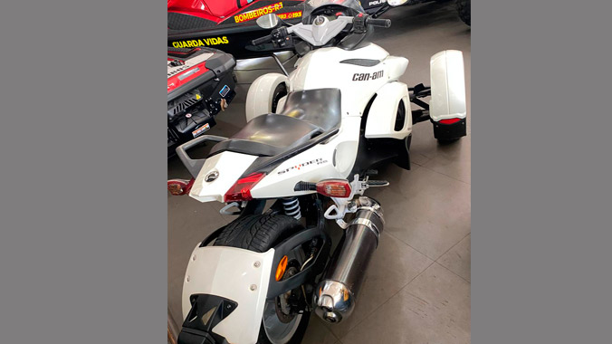 Can-Am Spyder RS-S, ano 2011 com apenas 4.574 km rodados! Um roadster que lhe oferece o máximo em conforto, desempenho e conveniência, além de atrair os olhares por onde passa! Equipado com motor Rotax 990, câmbio semi-automático, rodas de liga-leve, além de inúmeros dispositivos eletrônicos para manter sua condução sempre sob controle. Venha ver de perto!