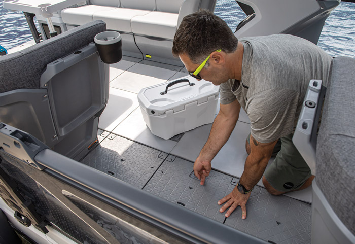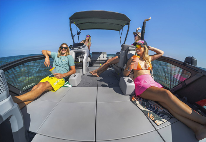 Uma plataforma pontoon com inúmeras formas de personalização, para você equipar exatamente de acordo com sua preferência e estilo de vida. Seu deck se adapta em segundos e equipamentos podem ser instalados e retirados num piscar de olhos, acomodando itens de conforto, esporte, pesca ou o que você quiser. Mude a configuração e tenha uma nova embarcação sempre que desejar.